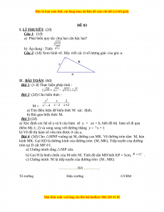 I. LÍ THUYẾT: (2đ) Câu 1: (1đ)