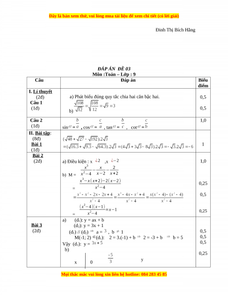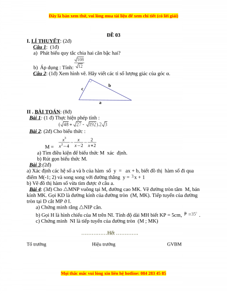 Đây là bản xem thử, vui lòng mua tài liệu để xem chi tiết (có lời giải)