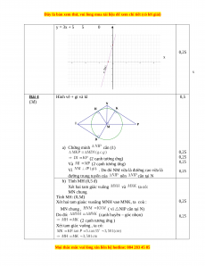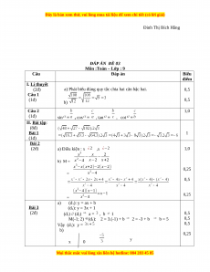 ( x2−4 )( x−1)=x−1 0,25 = x2−4 a) (d1): y = ax + b Bài 3 (d2): y = 3x + 1 (2đ) (d 0,5 1) // (d2) a = , b 1 M(-1; 2) (d 0,5 1): 2 = 3.(-1) + b 2 = -3 + b b = 5 Vậy (d 0,5 1): y = b) 0,25 y x 0