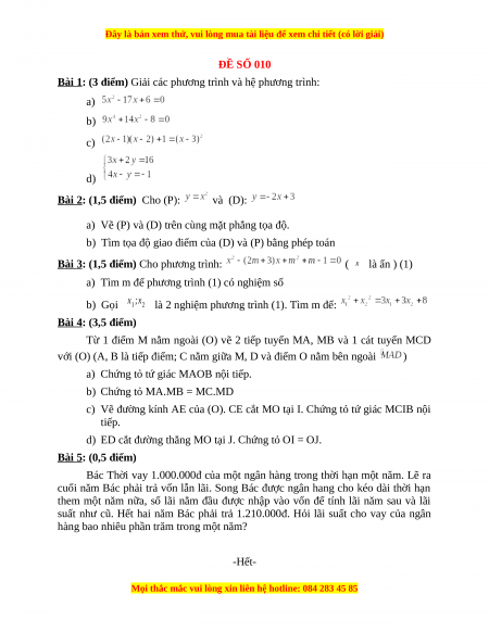 Đây là bản xem thử, vui lòng mua tài liệu để xem chi tiết (có lời giải)