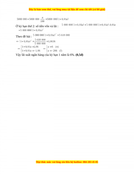 Vậy lãi suất ngân hàng của kỳ hạn 1 năm là 6%. (0,5đ)