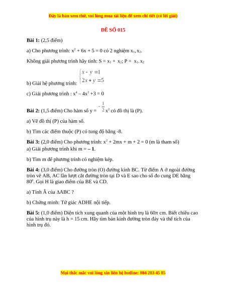 Đây là bản xem thử, vui lòng mua tài liệu để xem chi tiết (có lời giải)