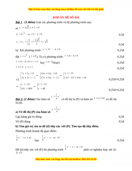 Bài 1 : (3 điểm) Giải các phương trình và hệ phương trình sau: a) b) d)