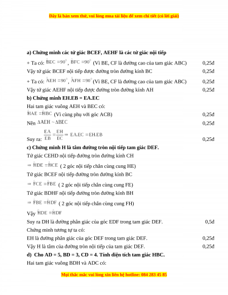 Bài 4. (3,5 điểm) Cho tam giác ABC có các góc đều nhọn và có ba đường cao là AD, BE, CF cắt nhau tại H.