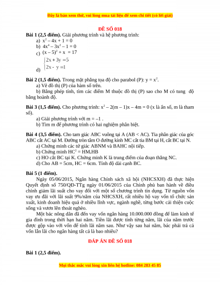 Đây là bản xem thử, vui lòng mua tài liệu để xem chi tiết (có lời giải)