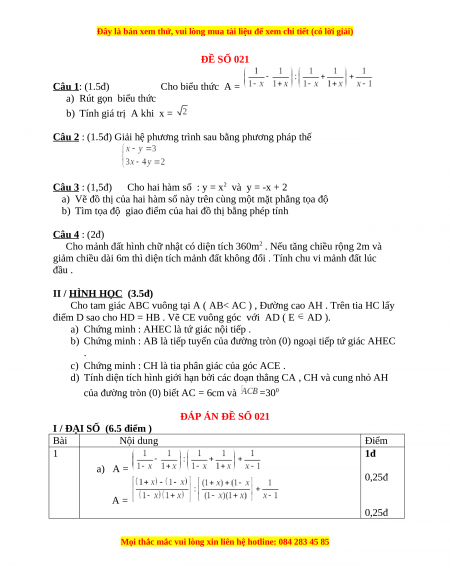 Đây là bản xem thử, vui lòng mua tài liệu để xem chi tiết (có lời giải)