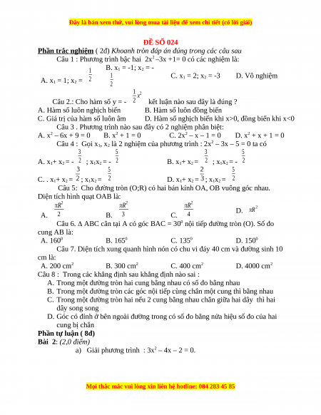 Đây là bản xem thử, vui lòng mua tài liệu để xem chi tiết (có lời giải)
