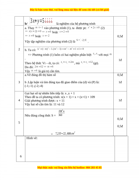 vào phương trình (1), ta được pt: (2) hoặc hoặc 0,5đ