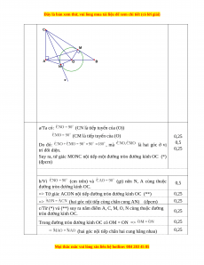 (CM là tiếp tuyến của (O) 0,25 Do đó: , mà là hai góc ở vị 0,5 trí đối diện. 0,25