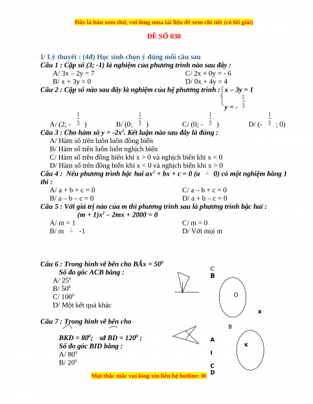 Đây là bản xem thử, vui lòng mua tài liệu để xem chi tiết (có lời giải)