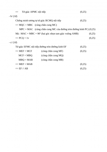 => MEF = MCF (cùng chăn cung MF) (0,25)