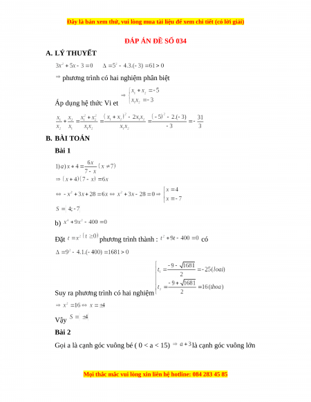 Đây là bản xem thử, vui lòng mua tài liệu để xem chi tiết (có lời giải)