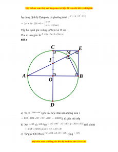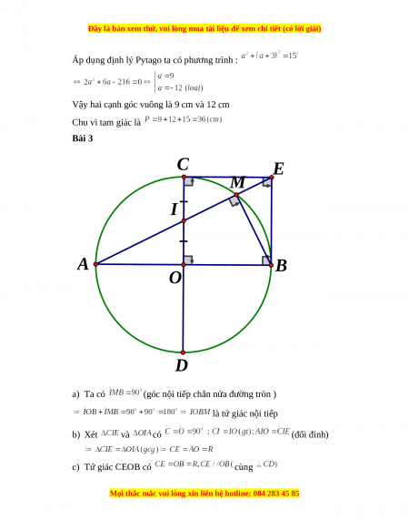 Vậy hai cạnh góc vuông là 9 cm và 12 cm Chu vi tam giác là Bài 3 C E M I A B O D a) Ta có