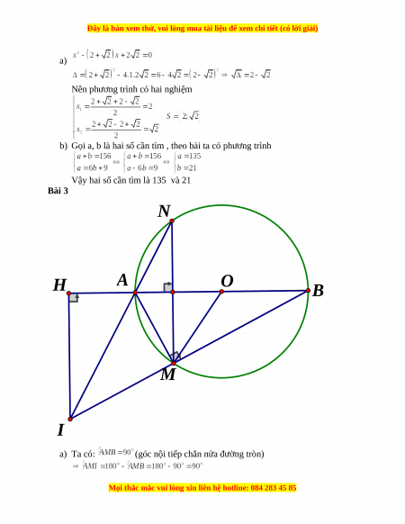 Vậy hai số cần tìm là 135 và 21 Bài 3 N H A O B M I a) Ta có: