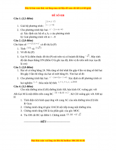 Vậy hệ phương trình có nghiệm duy nhất 2) b) Khi phương trình thành: Vậy Câu 2. 2) Học sinh tự vẽ Câu 3.