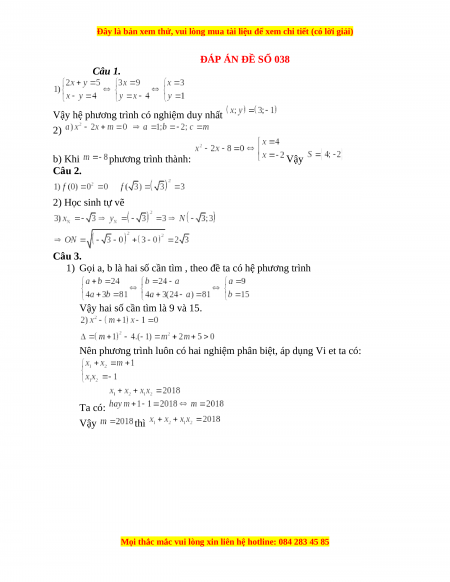 ĐÁP ÁN ĐỀ SỐ 038 Câu 1.
