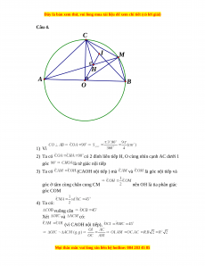 góc ở tâm cùng chắn cung CM nên OH là tia phân giác góc COM 4) Ta có: vuông cân Xét và có: (vì CAOH nội tiếp),