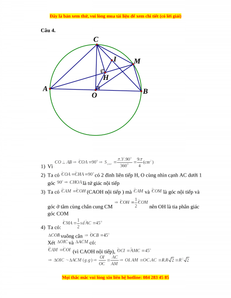 Câu 4. C I M H A O B 1) Vì 2) Ta có
