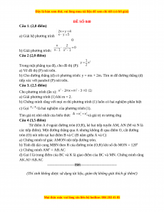 c) Khi đó áp dụng định lý Vi et Vì (với mọi m) Vậy Min A =6 khi m = 0
