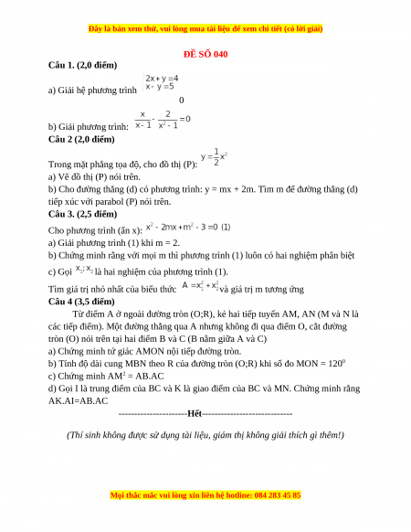 Đây là bản xem thử, vui lòng mua tài liệu để xem chi tiết (có lời giải)