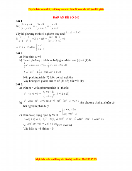 ĐÁP ÁN ĐỀ SỐ 040 Bài 1
