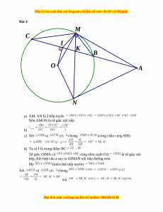 Nên AMON là tứ giác nội tiếp b) c) Xét và có: chung; (cùng chắn cung MB)