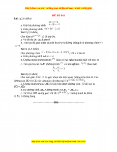Bài 3. (2,5 điểm) Cho phương trình , với x là ẩn số
