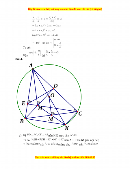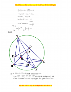 Ta có : Vậy thì Bài 4. A D O E H C M B K a) Vì nên H là trực tâm Ta có: