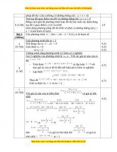 mọi giá trị của m để đi đến kết luận pt(1) luôn có nghiệm (1.5đ) - Lập được = Theo đề 0.75