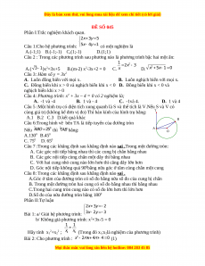 Câu 4: Phương trình: x2 + 3x – 4 = 0 có 2 nghiệm là; A. -1 và -4 B. 1 và - 4 C. -1và 4. D. 1 và 4
