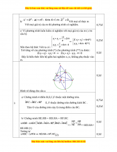 9 0 phương trình có hai nghiệm .Theo Viét: b x x 3 0,25đ 1 2 a c x x 5 1 2 a 2 2 0,5đ