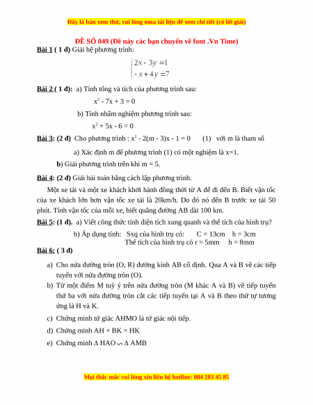 Đây là bản xem thử, vui lòng mua tài liệu để xem chi tiết (có lời giải)