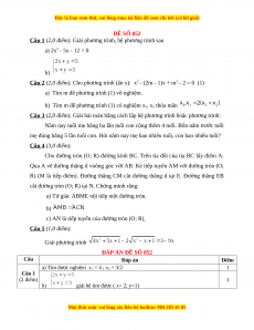 Câu 1 (2,0 điểm). Giải phương trình, hệ phương trình sau a) 2x2 - 5x - 12 = 0 b)