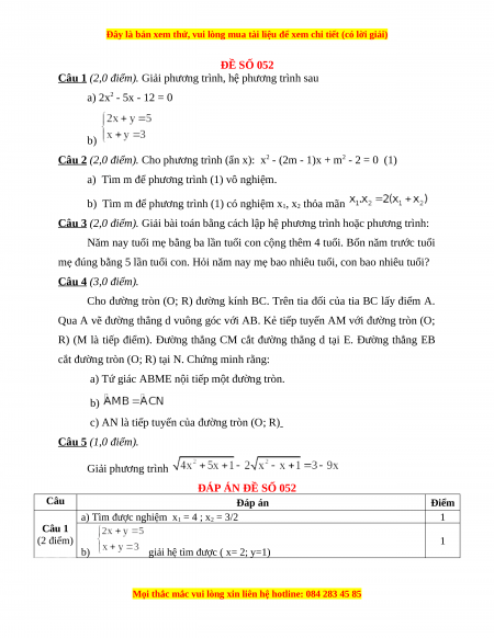 Đây là bản xem thử, vui lòng mua tài liệu để xem chi tiết (có lời giải)