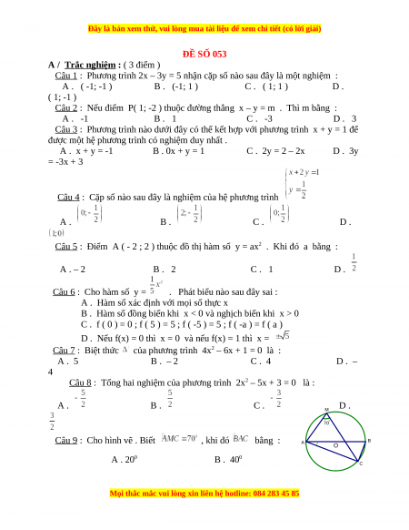 Đề thi Toán 9 học kì 2 năm 2022 - 2023 - Đề 53