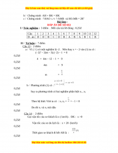 (- 2)2 – 2(m – 3).(- 2) – 1 = 0 0,25đ 4 + 4m – 12 - 1 = 0 0,25đ 4m = 9 0,25đ m = 0,25đ b / Phương trình (1) có : 0,25đ