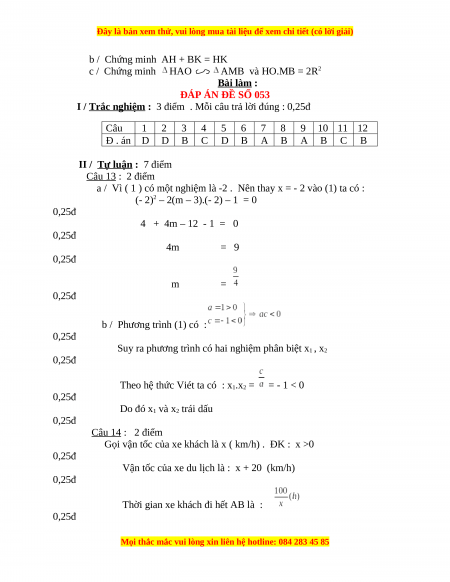 Do đó x1 và x2 trái dấu 0,25đ Câu 14 : 2 điểm
