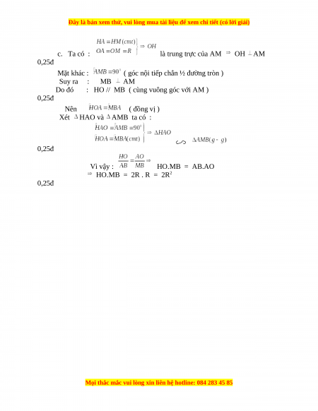 c / Chứng minh HAO AMB và HO.MB = 2R2 Bài làm :