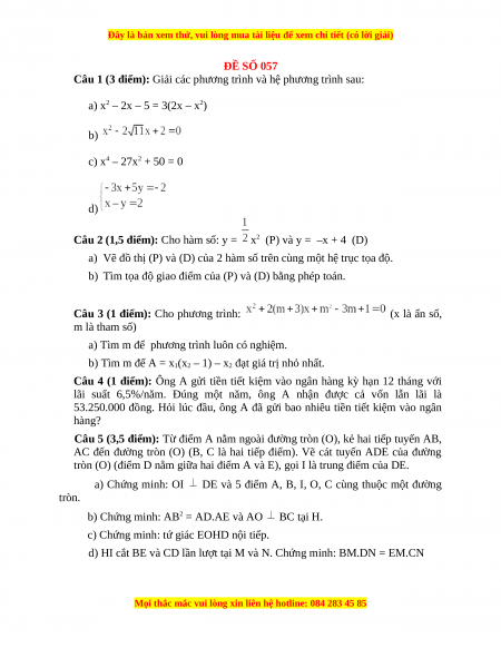 Đây là bản xem thử, vui lòng mua tài liệu để xem chi tiết (có lời giải)