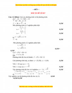 Nên phương trình có 2 nghiệm phân biệt: 0,25đ + 0,25đ c) x4 – 27x2 + 50 = 0 Đặt