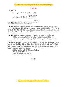 ĐỀ SỐ 001 Câu 1.(1,5đ) a) Rút gọn : A= 2 - 4 +5