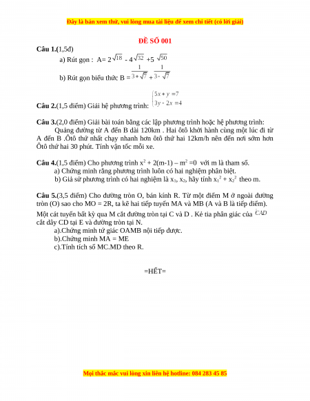 Đây là bản xem thử, vui lòng mua tài liệu để xem chi tiết (có lời giải)