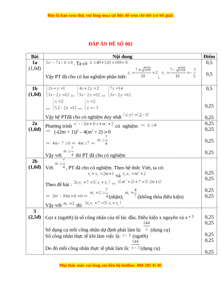 ĐÁP ÁN ĐỀ SỐ 002 Bài Nội dung Điểm 1a . Ta có 0,5 (1,0đ)