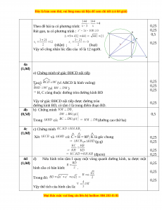 đường kính BD, có tâm I là trung điểm đoạn BD. 4b b) Chứng minh . (0,5đ) 0,5 Trong có: (đường cao thứ ba) 4c c) Chứng minh . (1,0đ) Xét và