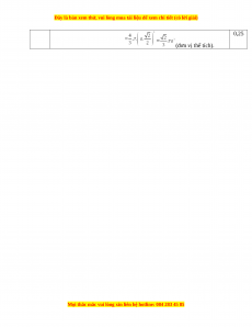 d) Nửa hình tròn tâm I quay một vòng quanh đường kính, ta được một (1,0đ) 0,25 hình cầu có bán kính: . 0,25 Trong đó: 0,25