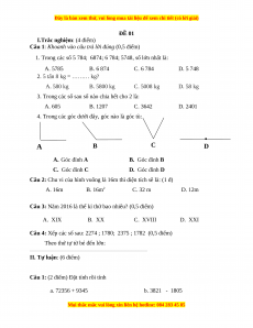 Câu 3: Năm 2016 là thế kỉ thứ bao nhiêu? (0,5 điểm) A. XIX B. XX C. XVIII D. XXI