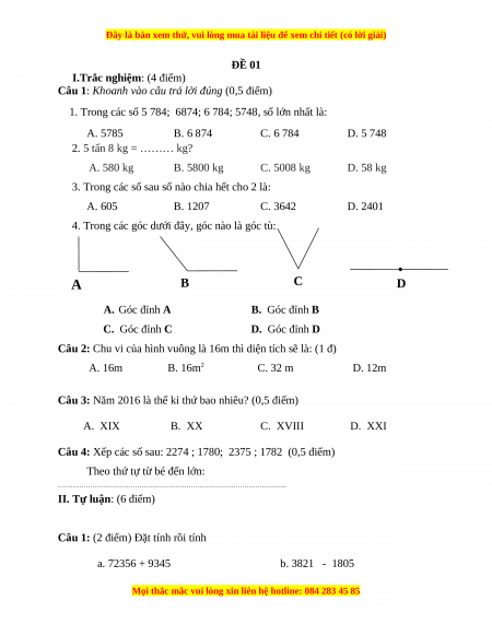 Đây là bản xem thử, vui lòng mua tài liệu để xem chi tiết (có lời giải)