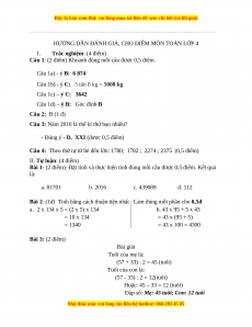 HƯỚNG DẪN ĐÁNH GIÁ, CHO ĐIỂM MÔN TOÁN LỚP 4