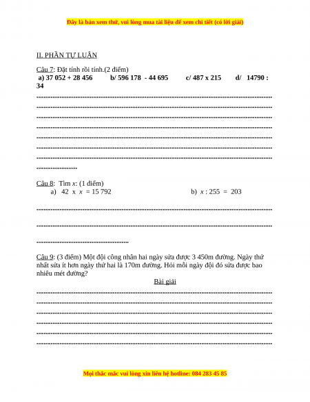 Đây là bản xem thử, vui lòng mua tài liệu để xem chi tiết (có lời giải)