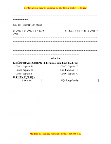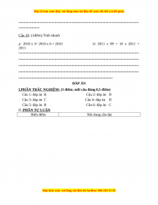 Câu 10: (1điểm) Tính nhanh a/ 2010 x 3+ 2010 x 6 + 2010 b/ 2011 x 89 + 10 x 2011 + 2011